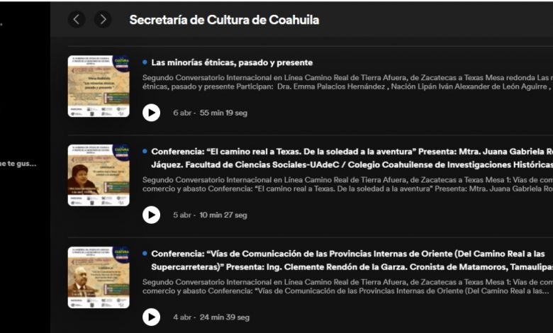 Durante el mes de abril se pueden escuchar las interesantes charlas del Segundo Conversatorio Internacional en Línea «Camino Real de Tierra Afuera, de Zacatecas a Texas».