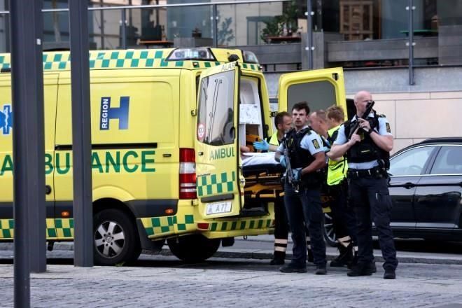 Las imágenes de la escena mostraron a personas corriendo fuera del centro comercial, y TV2 publicó una foto de un hombre en una camilla.