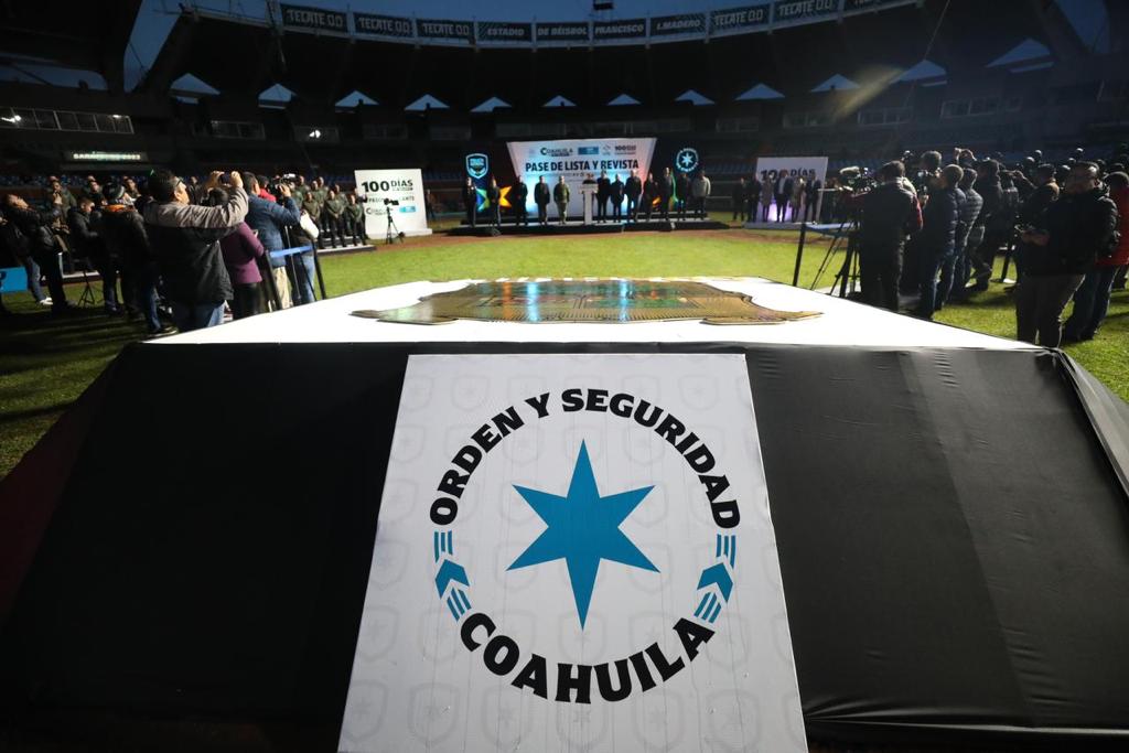 Los alcaldes José María Fraustro Siller, de Saltillo; José María Morales Padilla, de Ramos Arispe; Ramiro Durán García, de Arteaga. Además de Hugo Eduardo Gutiérrez Rodríguez, Subsecretario de Normatividad; Juan Sosa Pinto; delegado del Centro Nacional de Inteligencia; Héctor Flores Rodríguez, Subsecretario de Operación Policial; Alberto Gabriel Martínez López, Comisario de la Agencia de Investigación Criminal.