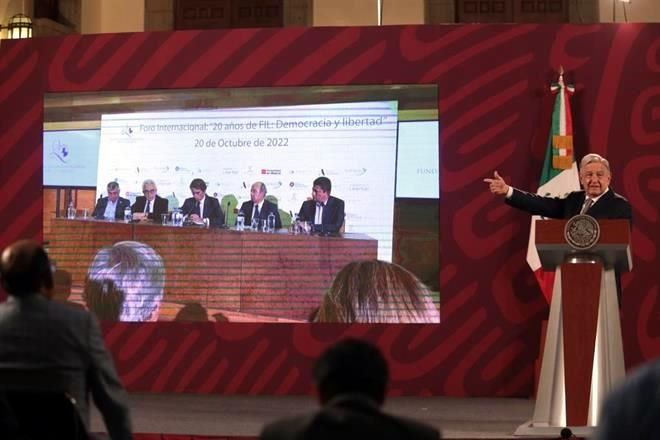 En la mañanera, López Obrador criticó el encuentro del 20 de octubre en Madrid, España, convocado por Mario Vargas Llosa, al que acudieron los ex Presidentes mexicanos Ernesto Zedillo y Felipe Calderón, además del ex Mandatario español José María Aznar.