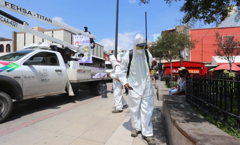 En seguimiento a los acuerdos establecidos por el Subcomité Técnico Regional Covid-19 Sureste, el Gobierno Municipal de Saltillo realiza tareas de concientización y de sanitización en la ciudad para disminuir los riesgos de contagio.