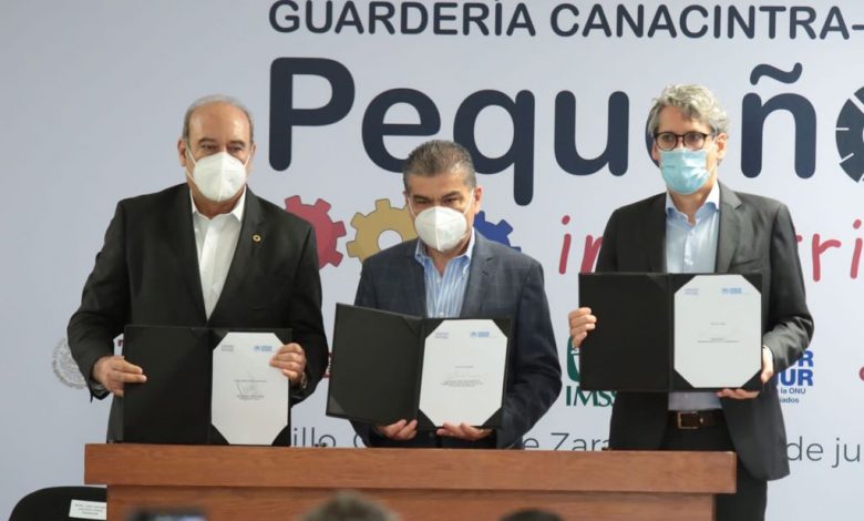 En ceremonia en la que estuvo el gobernador Miguel Ángel Riquelme Solís, esta mañana se presentó el proyecto de Guardería “Pequeños Industriales”, por parte de la CANACINTRA, el Instituto Mexicano del Seguro Social y el Alto Comisionado de las Naciones Unidas para los Refugiados (ACNUR).
