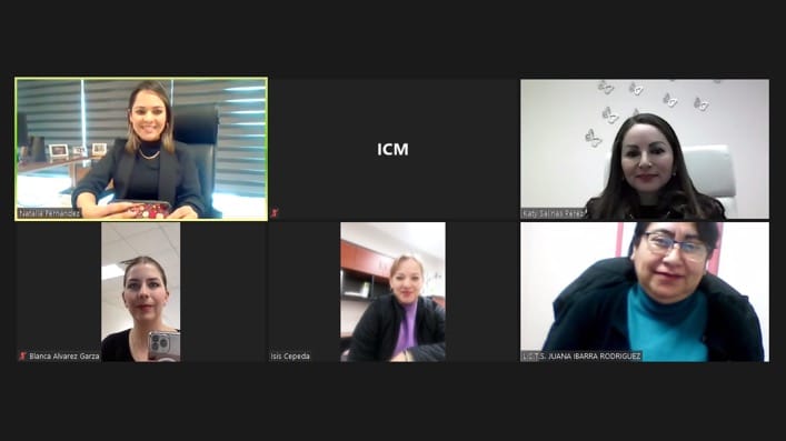 La funcionaria estatal sostuvo una reunión virtual con personal del Municipio de Torreón, en la que estuvo presente Natalia Fernández, Secretaria de Ayuntamiento; Isis Cepeda, Directora del Instituto Municipal de las Mujeres, y Blanca Álvarez, regidora, así como personal del Centro de Justicia y Empoderamiento para las Mujeres de ese municipio.