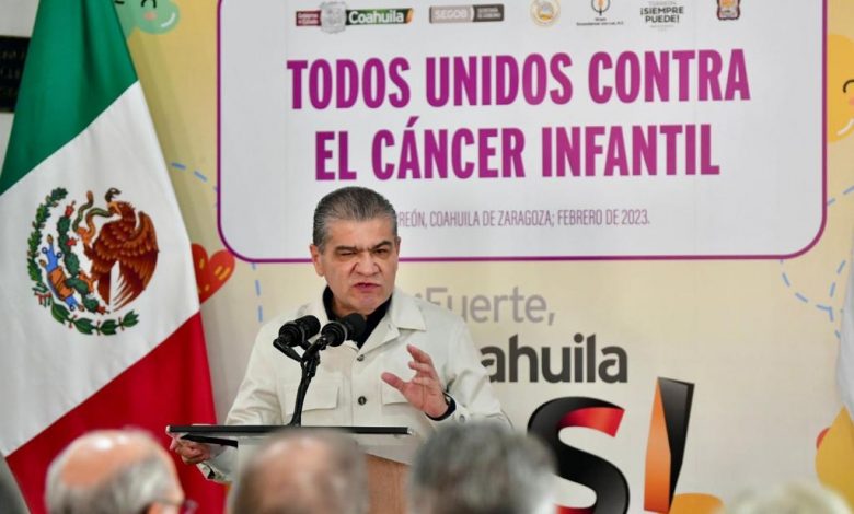 El gobernador Miguel Ángel Riquelme Solís encabezó el arranque de la campaña “Todos Unidos Contra el Cáncer” en Coahuila, evento en donde afirmó que en coordinación con el Ayuntamiento de Torreón donará cinco tratamientos de radioterapia para niñas y niños que enfrentan esta enfermedad, y que parte de las entradas del Teleférico de Torreón serán donadas para Casa Feliz.