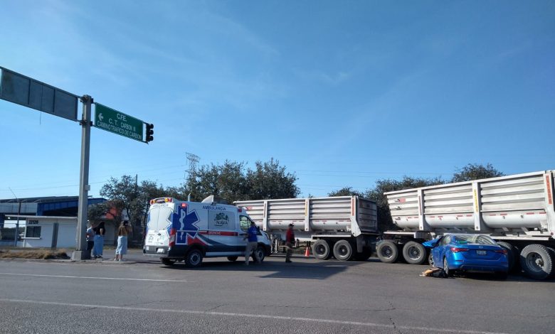 El incidente ocurrió cuando un camión que transportaba carbón, aparentemente tras haber dejado su carga en las instalaciones de la Comisión Federal de Electricidad (CFE), intentó realizar una maniobra de giro en la carretera. El tráiler, que estiraba dos tolvas de 30 toneladas cada una, invadió ambos carriles sin esperar a que el paso estuviese despejado. Esta imprudente acción resultó en un choque con un vehículo compacto de color azul. El impacto se produjo en la segunda tolva, entre los ejes del tráiler.