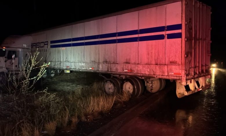 Tráiler de BRECA se sale de la carretera 57 tras lluvia en Sabinas