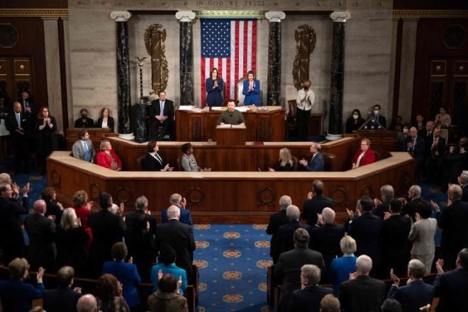 La presidenta de la Cámara de Representantes, Nancy Pelosi, en su invitación a Zelensky para hablar con los legisladores, dijo que «la lucha por Ucrania es la lucha por la democracia en sí misma» y que esperaban «escuchar su mensaje inspirador de unidad, resiliencia y determinación».
