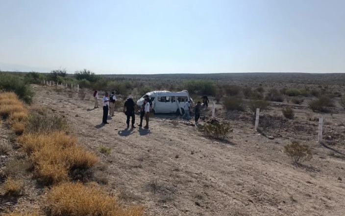 Una camioneta con al menos 13 tripulantes lesionados volcó en la carretera San Pedro – Cuatro Ciénegas. Iban rumbo a Mazatlán.