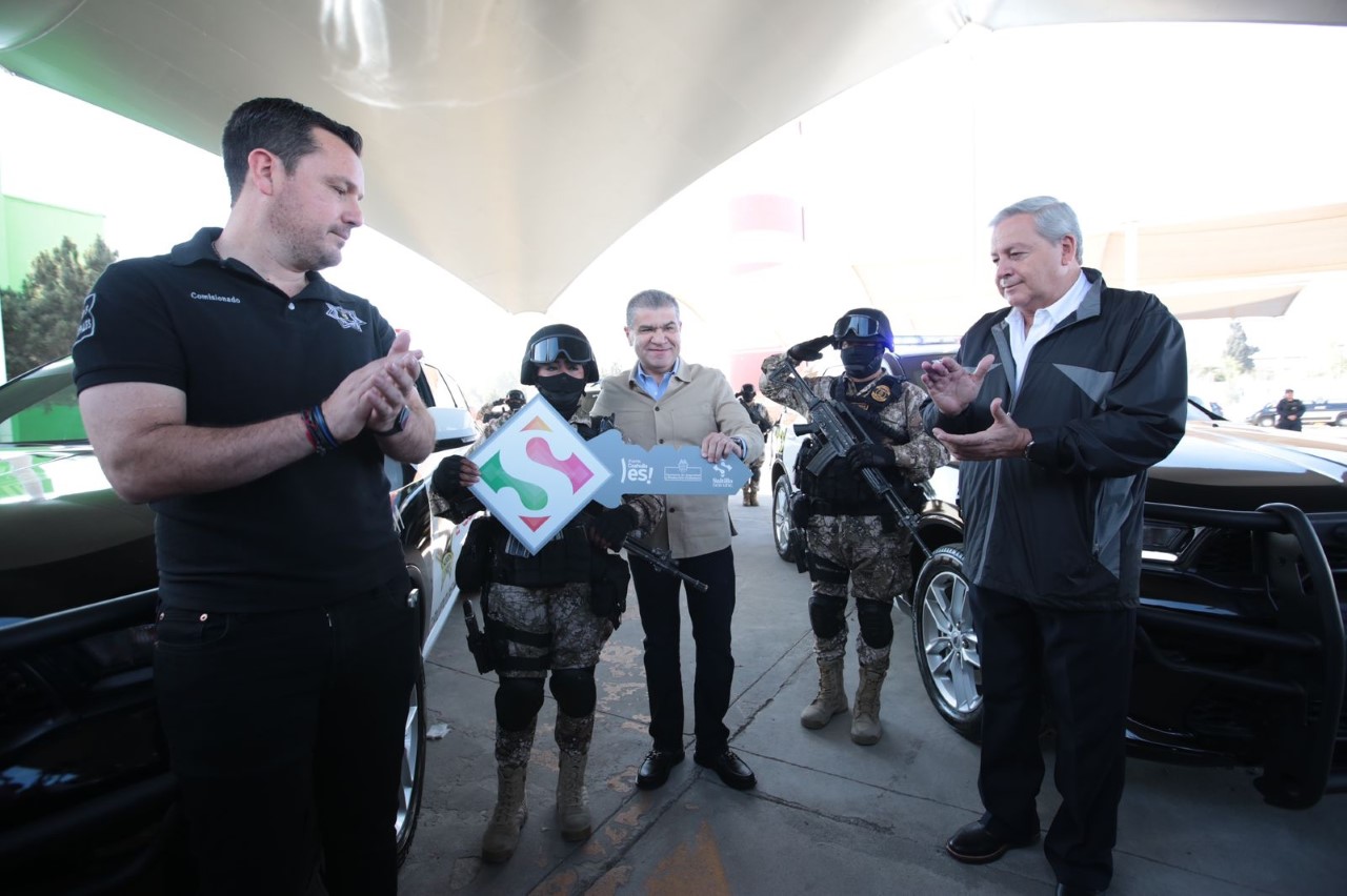Entregan Miguel Riquelme y José María Fraustro patrullas a la Policía de Saltillo, con inversión de más de 10 millones de pesos.