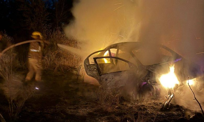 En el punto fue ubicado un Chevrolet blanco completamente envuelto en llamas, así como vegetación que también resultó afectada por el fuego. Los cuerpos de emergencia realizaron recorridos a pie en los alrededores para descartar víctimas, sin encontrar indicios de personas.