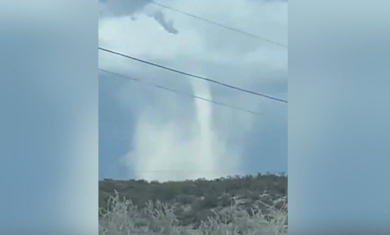 Un fenómeno meteorológico sorprendió a habitantes en la zona norte de Del Río, Texas, muy cerca de la frontera con Acuña, Coahuila, luego de que se formara una columna de nubes en espiral que descendía de manera amenazante hacia la superficie.