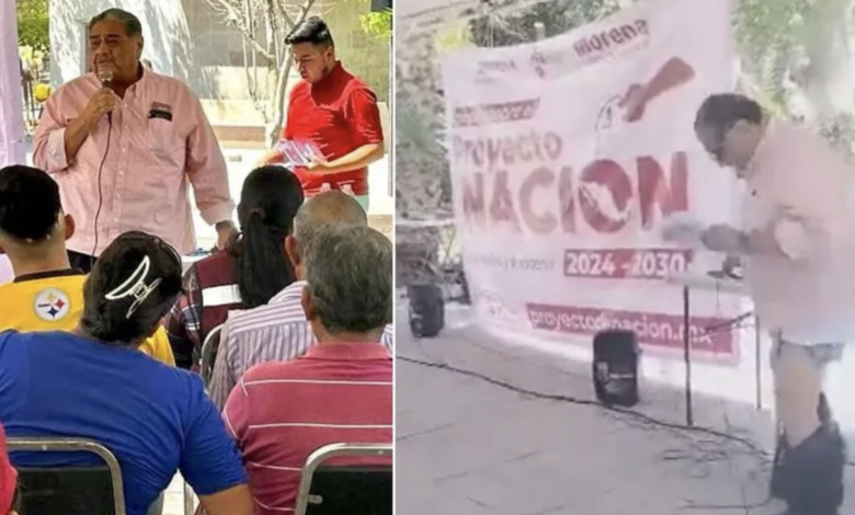 Javier Borrego, diputado federal de Morena, sufrió un incidente durante una asamblea pública en Coahuila, el cual involucró sus pantalones.