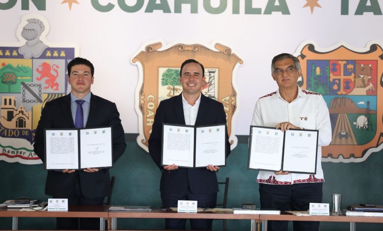 En las instalaciones del 69° Batallón de Infantería, Manolo Jiménez Salinas, Samuel García Sepúlveda y Américo Villarreal Anaya, gobernadores de Coahuila, Nuevo León y Tamaulipas, respectivamente, ratificaron, mediante la firma de un convenio de colaboración, la creación de un Grupo de Coordinación Operativa que se reunirá de manera periódica para definir acciones y valorar avances en la seguridad regional.