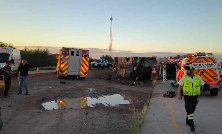 Volcadura de autobús deja al menos 5 muertos en Sonora