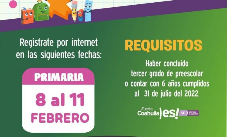 Anunció que del martes 8 al 11 de febrero serán las preinscripciones para Primaria, y llamó a los padres de familia a visitar la página www.inscripciones para conocer las fases de proceso de cada nivel, realizar su preinscripción en las fechas señaladas.