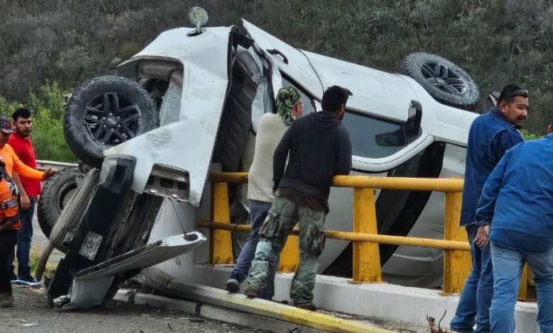 Vuelca camioneta en puente Las Gemelos; moviliza a cuerpos de emergencia
