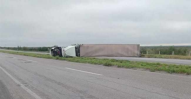 La mañana de este martes, un camión de carga que transportaba más de 15 toneladas de amoniaco de sodio volcó en la carretera federal 57, a la altura del kilómetro 97, cerca del restaurante La Escondida en Sabinas. El accidente se registró luego de que el operador, tras una extensa jornada de viaje desde Guadalajara con destino a Nueva Rosita, dormitara al volante.