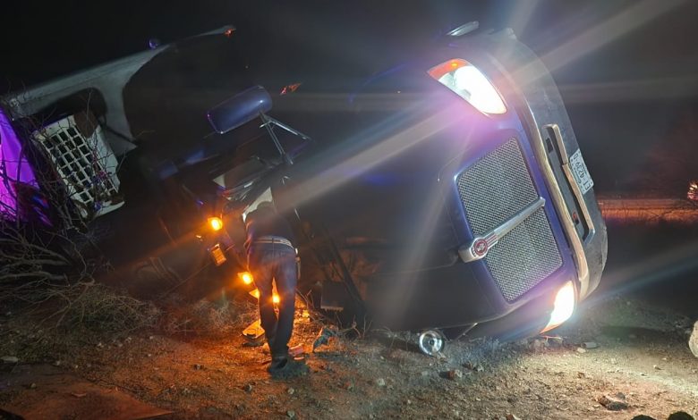 Redacción | Acuña, Coah.– Un accidente vial registrado la noche de este lunes en la carretera federal número 29, que conecta a Acuña con Zaragoza, dejó como saldo daños materiales y el cierre momentáneo de la vía, luego de que un tráiler terminara volcado tras chocar con una camioneta pickup.