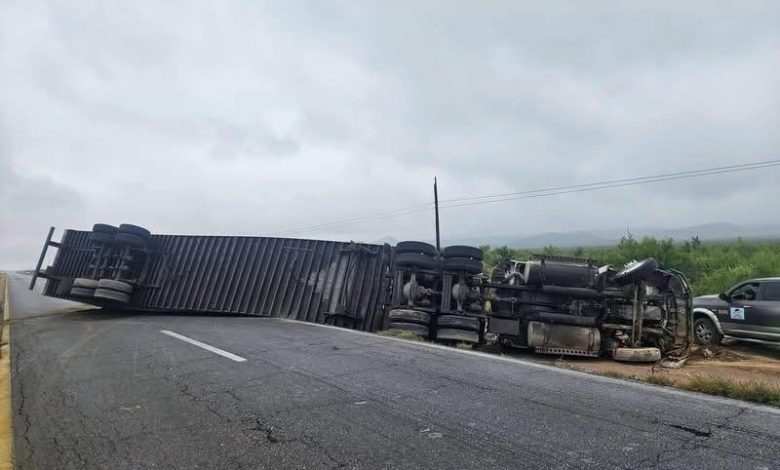 Un aparatoso accidente se registró sobre la carretera federal 57, luego de que un tráiler volcara a la altura del kilómetro 49, en el tramo que conecta Monclova con Sabinas, provocando el cierre total de la circulación.